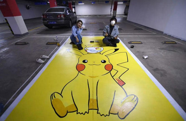 车位涂鸦?这的确是个新鲜事儿,到底怎么画呢?都是纯手绘,根据客户的要求,进行“私人订制”!
